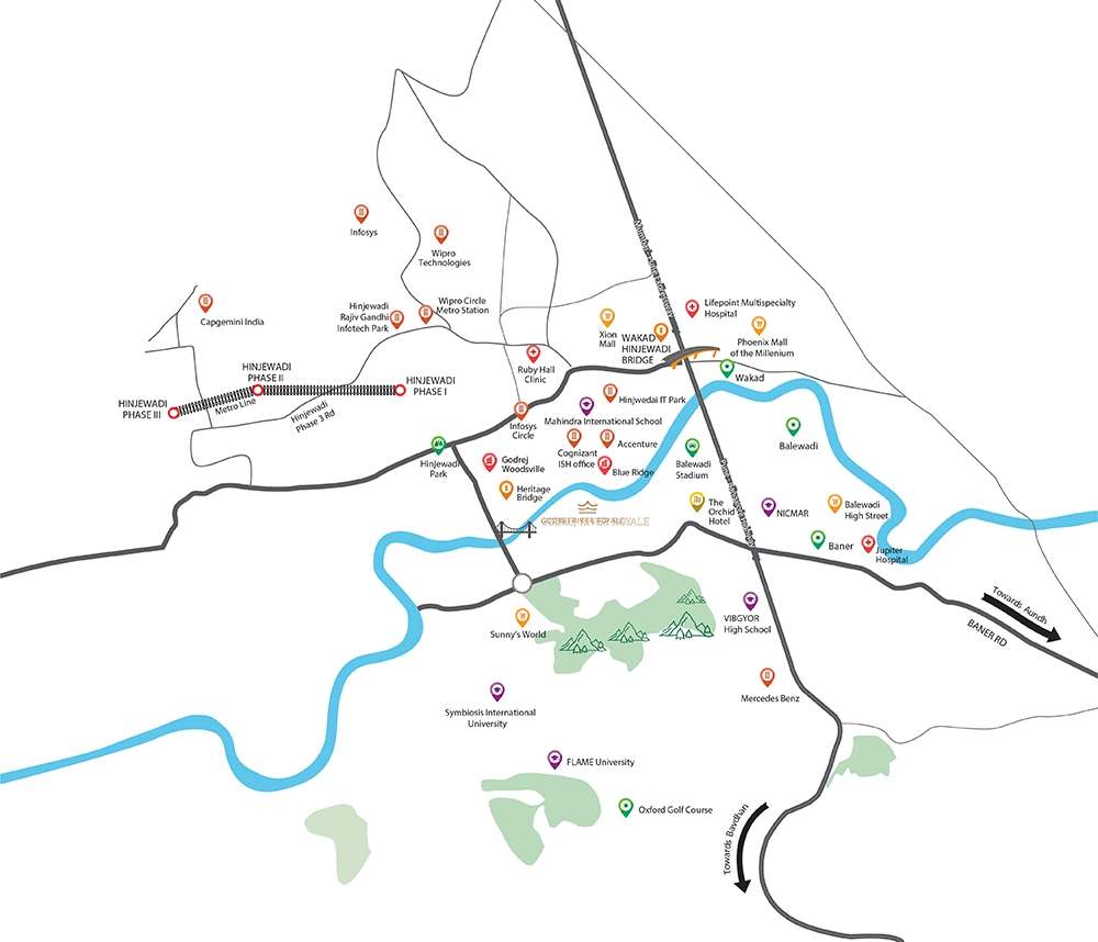 Located on Baner-Hinjewadi Road, Pune, Maharashtra has direct access to the international airport, branded schools, reputed hospitals and shopping malls. Explore more in detail with the above associated Godrej River Royale location map.